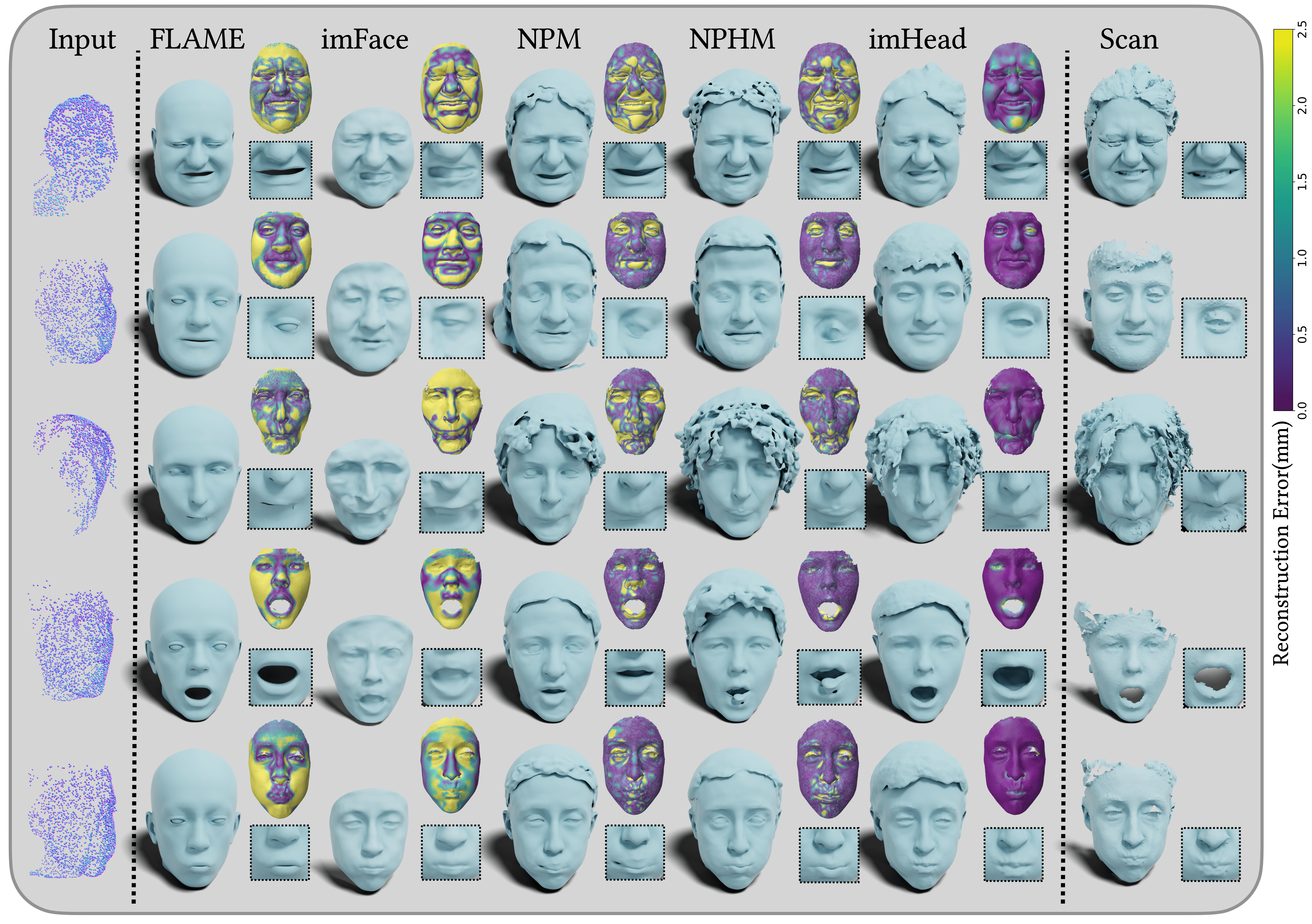 To do so, we curate a large scale dataset that is 10x- bigger than previous full head datasets. We highlight the limitations of previous methods in capturing both global and local fields in a stratified manner and propose an effective strategy that enables both compact latent space and localized editing properties.